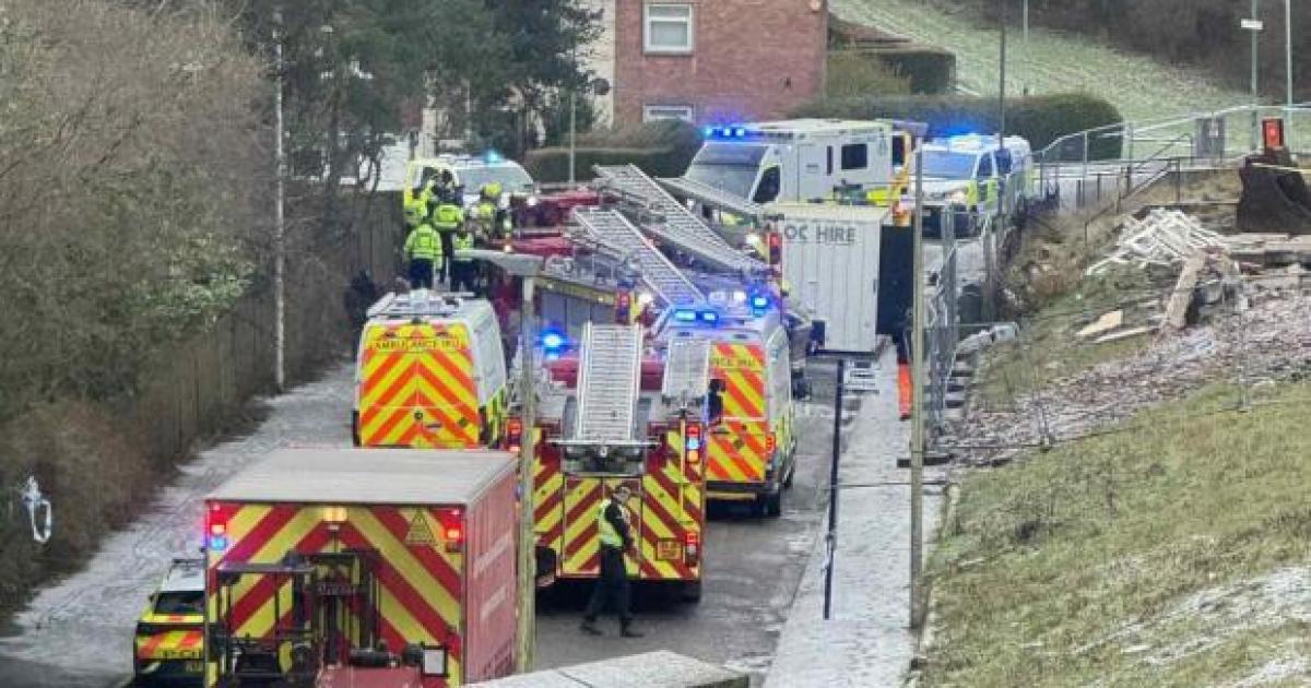 Images from the site showed fire engines, ambulances and police vehicles parked near the ongoing demolition works, with emergency personnel wearing hard hats and high-visibility clothing working in the area.
