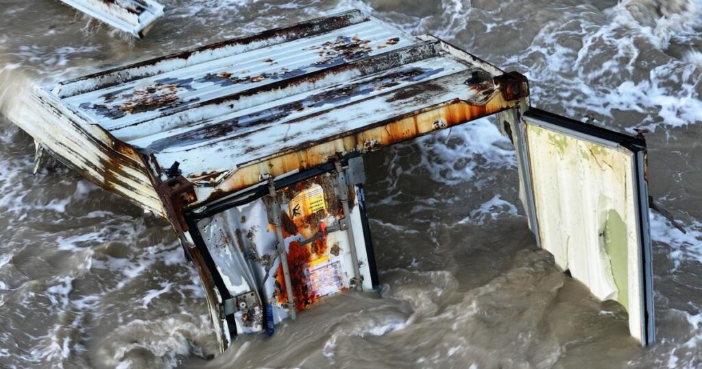 A shipping container has washed ashore at Elmer beach in Bognor Regis, West Sussex