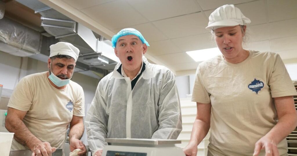 Sir Ed Davey with a member of the Mamoosh team creating the pita breads (Image: NQ)