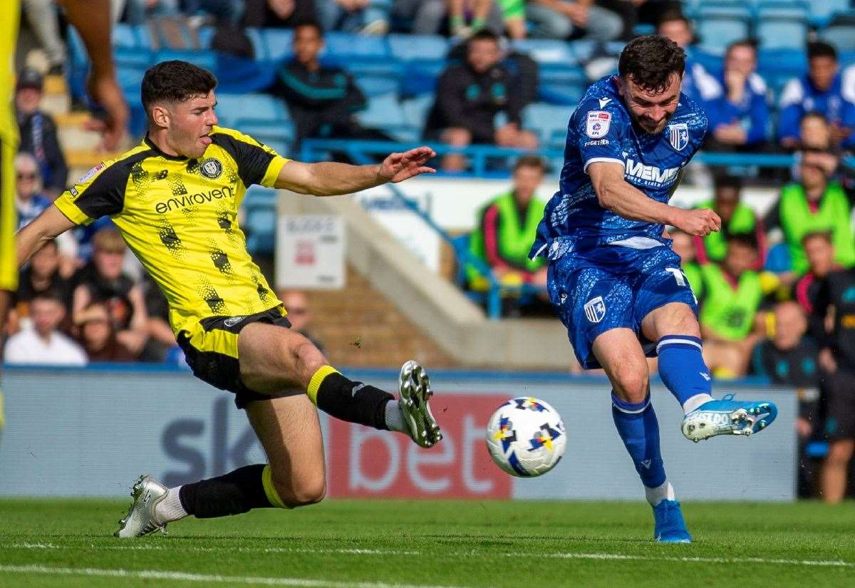 Jonny Smith in action against Harrogate Town at Priestfield back in September Picture: @Julian_KPI