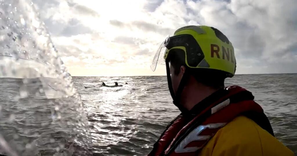 Despite the group’s experience, the RNLI said they had been “caught out by sea conditions” and were unable to keep up bailing out the amount of water entering the boat.