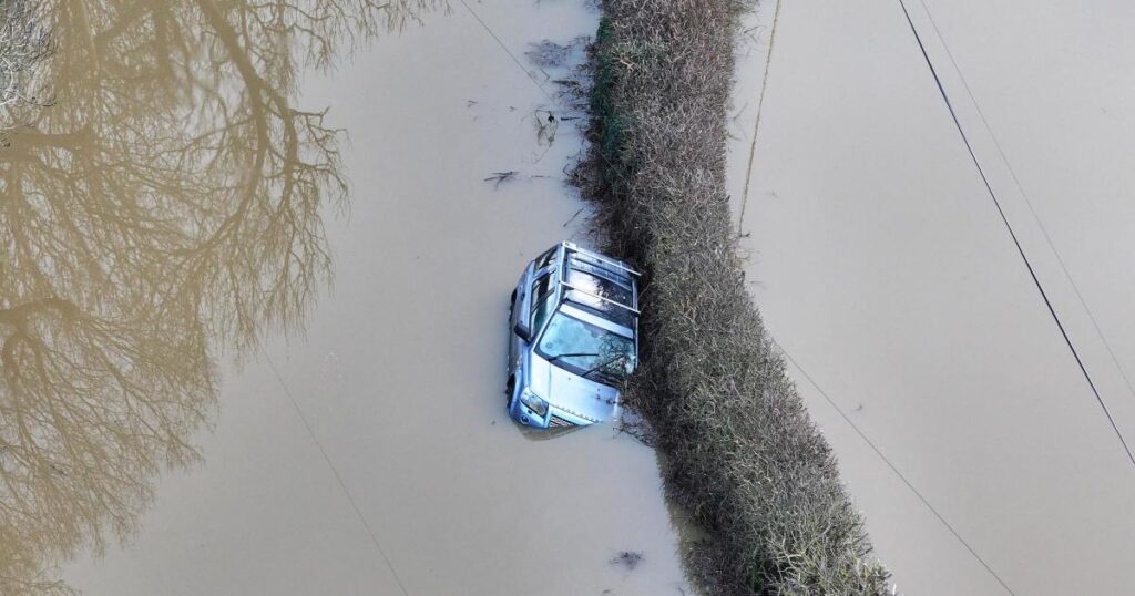 A car has been caught in the flooding here, along with another vehicle in Alfriston, much of which is also under water.