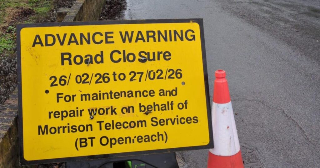 Beechenlea Lane will be shut – outside Cherry Tree Cottage – for up to four days after February 23 due to Openreach works.