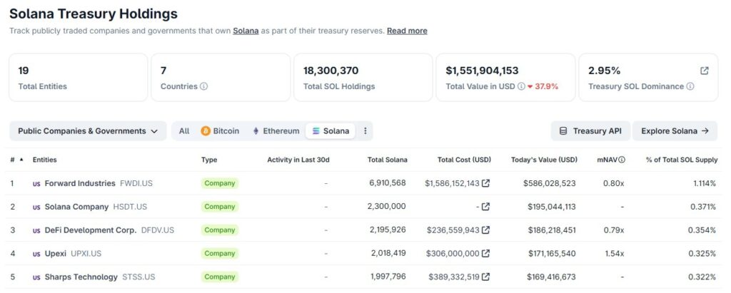 Forward Industries, the largest holder, accumulated over 6.9 million SOL at an average cost of about $230. With SOL trading around $84, Forward has unrealized losses of over $1 billion.Â
