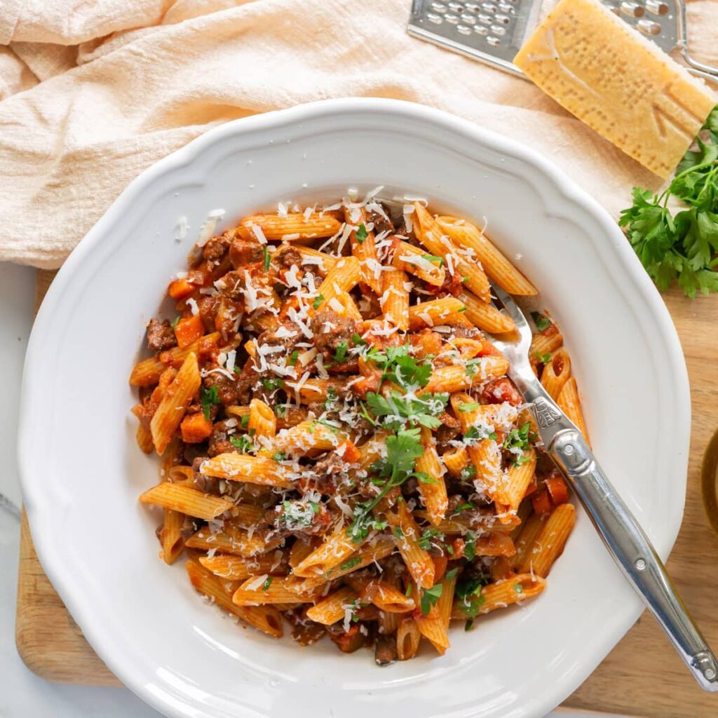 They’re all great pasta shapes for catching every bit of that rich, meaty sauce.