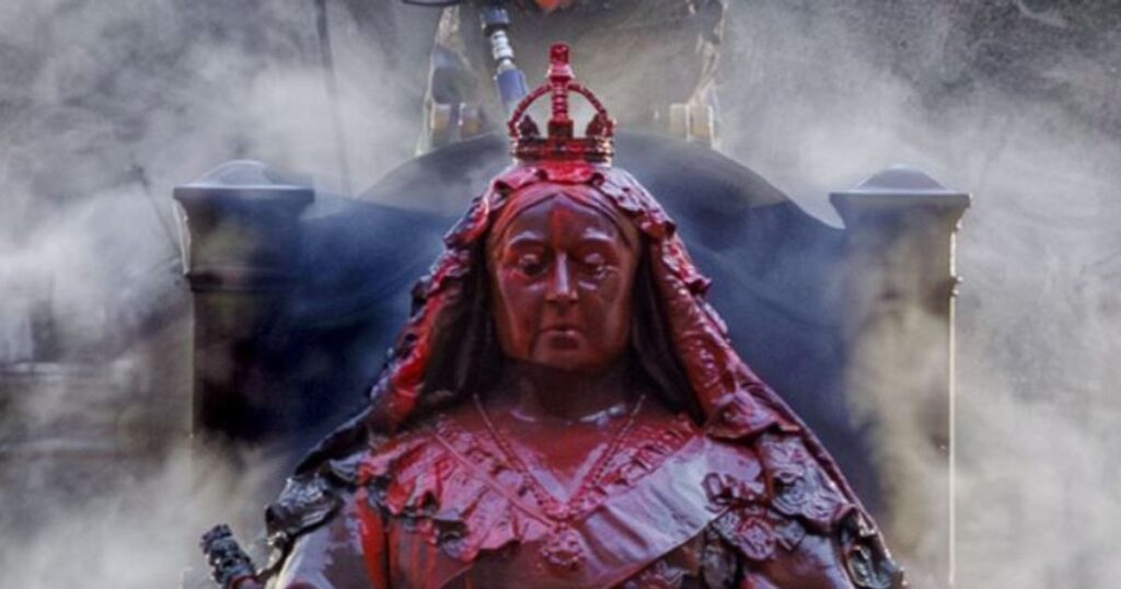 Republican group Lasair Dhearg posted a picture on social media on Friday afternoon appearing to show one of its supporters pouring red paint over the statue. In an accompanying post, the group said “Belfast activists” had paid a visit to the “Famine Queen” – a reference to the Irish potato famine of the mid-19th century.