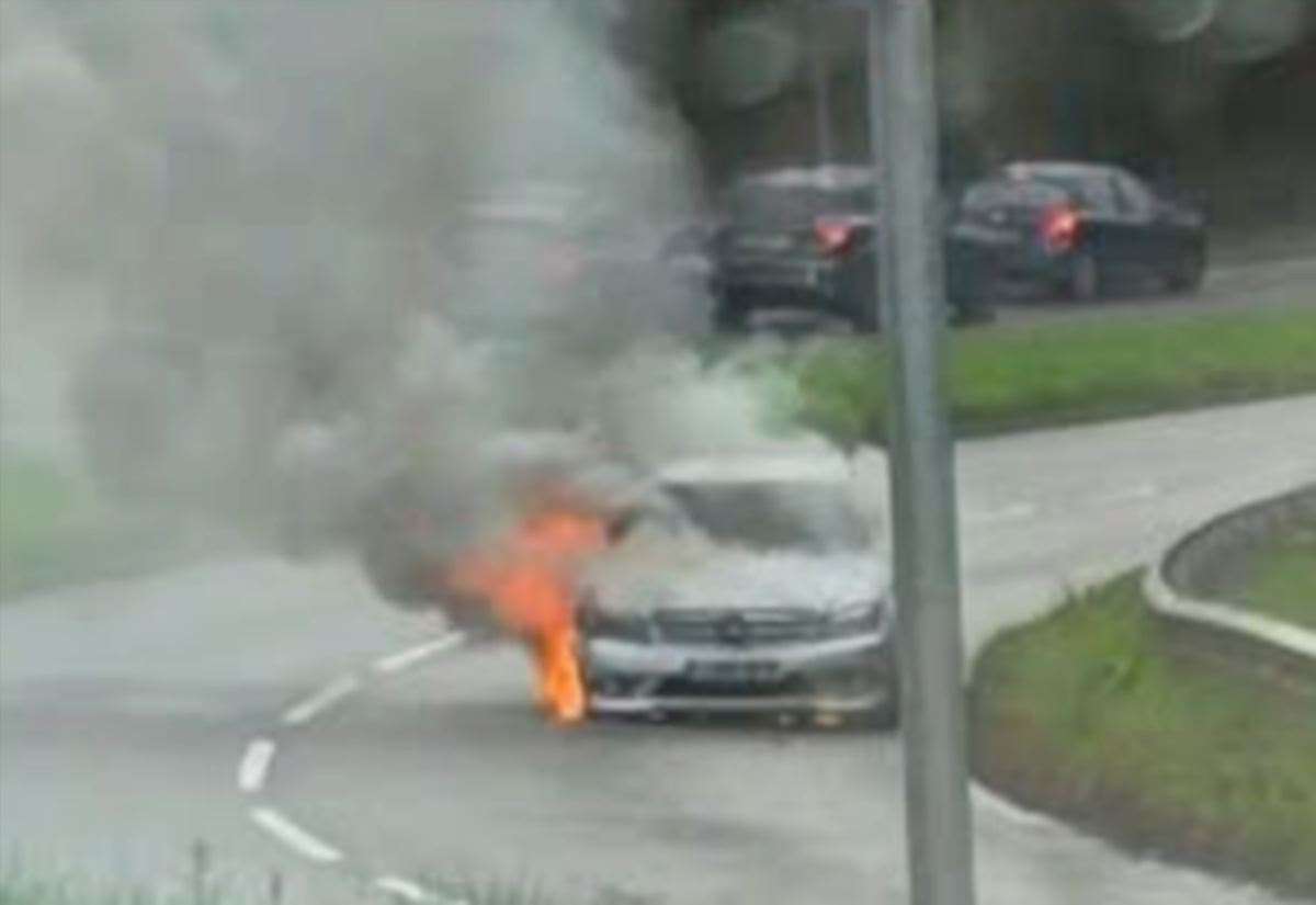 The vehicle caught alight near Walderslade Woods in Chatham yesterday (February 28).