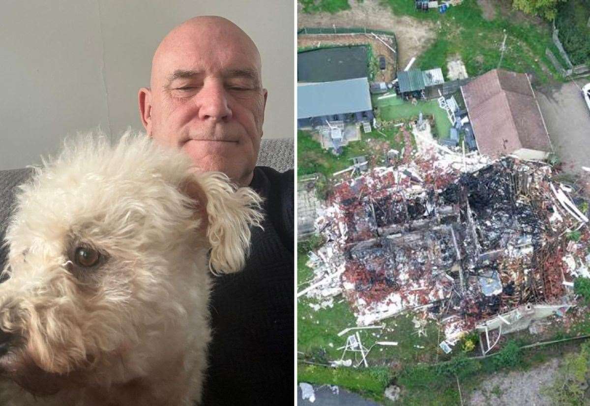 John Burvill continued living in a static home on the site in Charing, near Ashford, after the explosion destroyed the bungalow he shared with his wife Charlane.