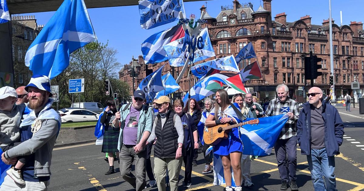 Independence supporters turned out en masse today to march through Glasgow’s streets. (Image: NQ)