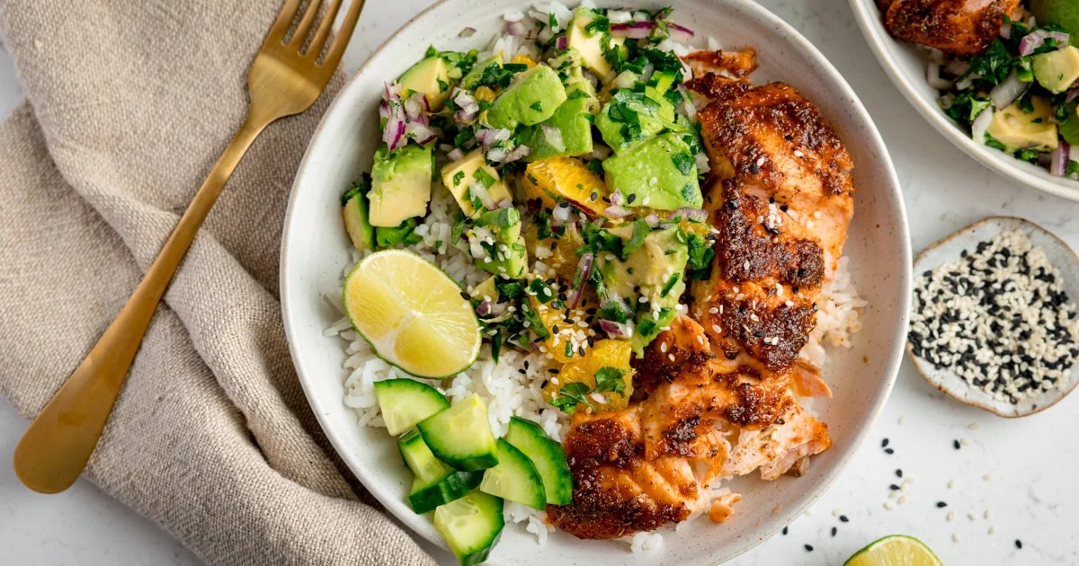 Inspired by and adapted from Lindsay from Pinch of Yum’s amazing BBQ salmon bowls.